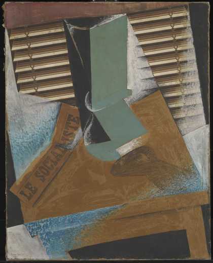 Bottle of Vieux Marc, Glass, Guitar and Newspaper (1913)